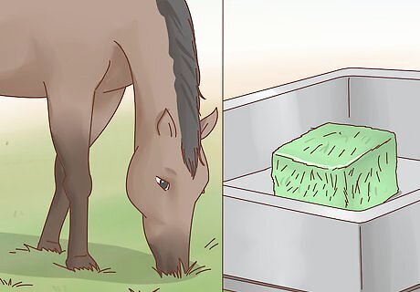 Provide your horse with plenty of water. Make sure that the water in your horse’s trough is clean and not frozen. Keep the trough clean as well by hosing it out every day.