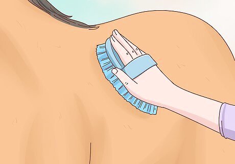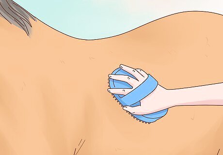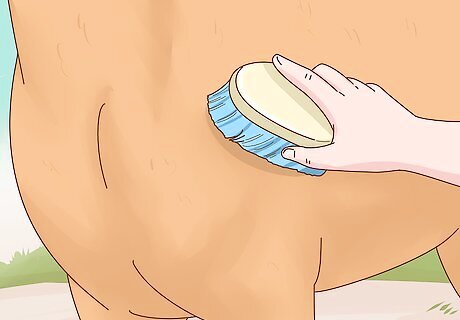 Use a rubber curry brush to loosen up the dirt on your horse’s coat. Move the brush in a circular motion over your horse’s body. To avoid injuring your horse’s more delicate skin, do not use the rubber curry brush on your horse’s face or legs.