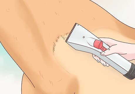 Use electric clippers to trim your horse’s body hair. If there are any areas of your horse’s coat that look like they need to be trimmed, use a pair of electric clippers to neaten them up. Don’t use the electric clippers on or around your horse’ face or you may startle her and even injure her. You don't need to clip your horse's coat every time you groom it. Wait until it has grown back. Make sure you clean the clippers after use. Never clip inside your horse's ears; the fur there protects them from dust and flies. You can clip the outsides of the ears. Doing this step is optional, however, it looks better for showing. Blanket your horse in the paddock when it is cold if you choose to clip its hair.