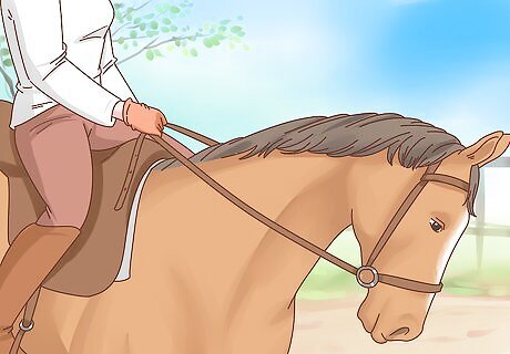 Use negative reinforcement. Applying gentle pressure with the reins or using a gentle whip tap can be used as negative reinforcement. Continue to apply the negative reinforcement until your horse does what you have asked. Make sure that you do not use any type of negative reinforcement that frightens or hurts your horse. The negative reinforcement should not be frightening or painful, just annoying.