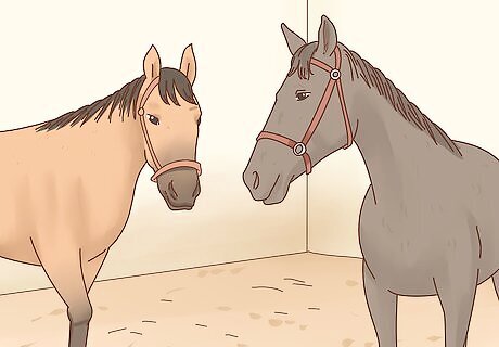 Socialize your horse. It is important for horses to be with other horses. Make sure that your horse has a companion or two that she can interact with on a regular basis. If possible, let your horses see each other in their stalls.
