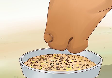 Provide small amounts of grain to your horse throughout the day. Every day, horses can also have a ½ pound of grain per 100 pounds of body weight. Feed grain to your horse in two or three evenly spaced feedings during the day. Make sure to measure the grain portions that you feed your horse to make sure that you are giving her the correct amount. If the weather is hot, feed grain to your horse during the cooler hours of the day, such as early in the morning and later in the evening.