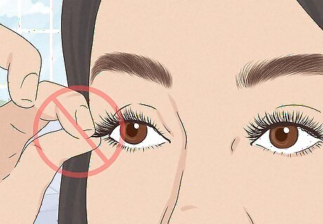 Do not pull or tug on your lashes. If they're criss-crossing, use a disposable mascara wand to comb through your lashes, root to end.