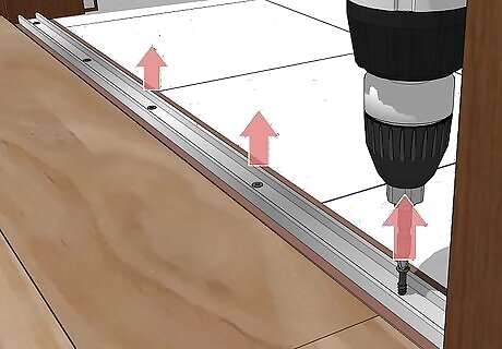 Unscrew any metal tracks covering seams of the laminate flooring. Sometimes there are additional metal pieces of molding underneath transition strip molding. Use an electric drill to unscrew the screws holding these strips in place, then lift them up and set them aside. If there is any metal tracking that happens to be held down by nails rather than screws, use your pry bar to pry the nails out.