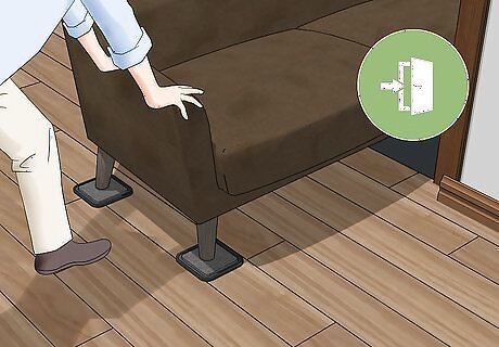 Clear furniture and everything else off of the laminate flooring. Clear small items off of shelves and other furniture and put them somewhere out of the way. Move furniture to other rooms to clear the laminate flooring so you can take it up. If there are any items that are too large to move to another room, put them all in the center of the laminate flooring for now. You can remove the flooring from the edges inwards, then move the furniture to the side of the room to access the flooring in the middle.