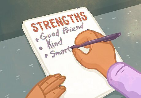 Suggest that they list their strengths and achievements. Listing things they like about themselves is a practical way to boost their self-esteem. Have your loved one write down their positive qualities, accomplishments, and interests. Tell them to keep the list in a drawer and to read it whenever they feel insecure. If they can’t come up with anything, give them suggestions, such as, “You’re a great friend, you’re funny, and you give the best advice,” or “You love gardening and you grow the best tomatoes I’ve ever had!”