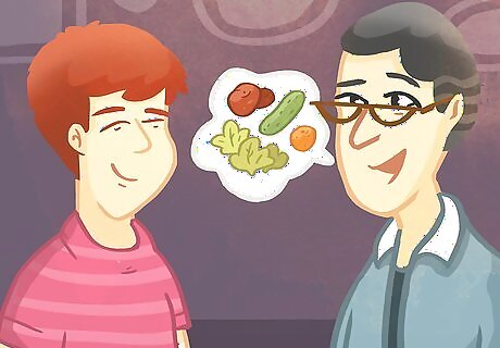 Offer advice about eating a healthy diet. Explain that giving their body the nutrients it needs can help boost their mood. Recommend that they eat a balanced diet of fruits, vegetables, lean protein sources, whole grains, and fat-free or low-fat dairy products. While sweets can offer a quick burst of satisfaction, swapping them for healthier snacks is better in the long run. To help them learn about eating healthy, you could cook them a meal or invite them to go to a farmer's market with you. Like personal hygiene, eating habits can be a sensitive topic. You might not want to give unsolicited advice or force the issue if your loved one doesn’t want to talk about it.