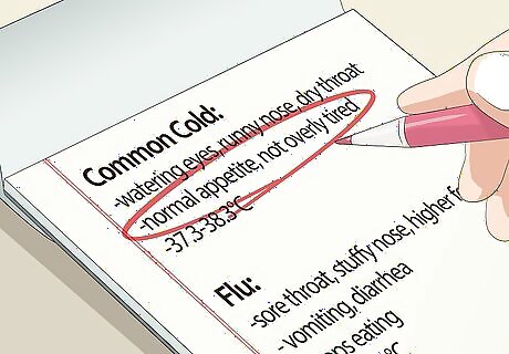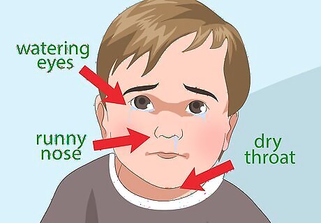 Look for signs of the common cold. Although runny nose, dry throat, and mild body aches are also signs of the flu, your child might show distinctive signs of a cold. You might notice your toddler sneezing or coughing more. Their eyes may also water if they have a cold. It can be hard to determine, but if your child has mild headaches, they may have the common cold.