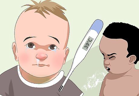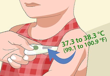 Take your child's temperature. Small kids that haven't been exposed to as many viruses may develop fevers to fight common colds. Use a digital thermometer to take your child's temperature to see if they're running any fever. A low-grade fever (99 to 100.9°F/37.3 to 38.3°C) probably means they have a cold. Continue monitoring your child's temperature to ensure the fever doesn't get higher.