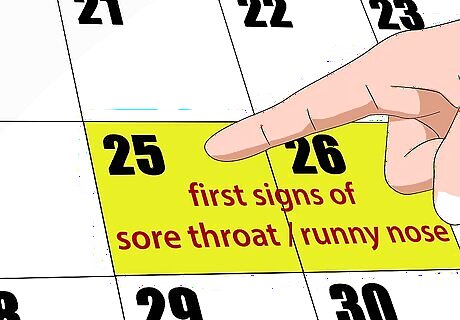 Consider when your toddler's signs appeared. Think back to when your child began feeling unwell. If the signs of illness have been coming on gradually, your toddler probably has a cold. For example, your toddler might have first complained of a sore throat or runny nose. Within a few days, they may show other signs, like a stuffed up nose or cough. Most kids get colds during the winter season (or rainy season, if you live somewhere temperate), but colds can happen year-round.