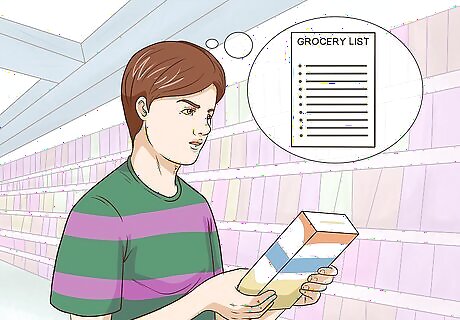 Memorize your grocery list. Take a mental inventory of the items you’re running low on right before you head to the store. Once you’re there, stock up on the essentials first, then try breaking the rest of your list up into increasingly-narrow categories, such as “breakfast” or “snack foods,” or the specific recipes you plan on using each item in. Start with small odds-and-ends trips and strive to get to the point where you can do all of your shopping for the entire week purely from memory. It’s a good idea to jot down a physical list just in case you draw a blank once you’re actually in the store. There’s nothing worse than getting home only to realize you’ve forgotten something you desperately need!