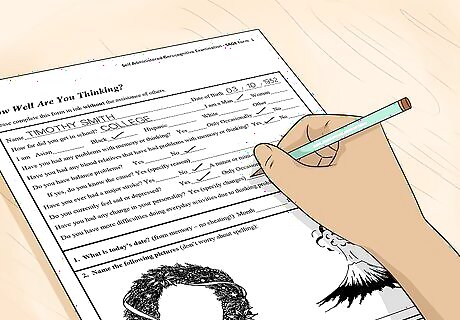 Take a SAGE test. The SAGE test is used to detect early-onset Alzheimer’s or dementia in patients experiencing memory issues. Most forms consist of 12-15 questions, each of which is centered around gauging how efficiently you think while performing certain tasks. You can give yourself a SAGE test from the comfort of home by simply downloading and printing off one of the handy worksheets provided by the Wexner Medical Center at Ohio State University. If you’re truly concerned that you might be suffering from Alzheimer’s disease or age-related dementia, have your SAGE test reviewed by your family physician. They’ll be able to make an informed, reliable diagnosis if there’s one to be made. The results of one SAGE test won’t necessarily detect symptoms of Alzheimer’s or dementia on their own—the idea is to take multiple tests over time and watch for a decline in performance that might point to a worsening condition.Tip: Setting aside a few minutes to take a SAGE test has the potential to alert you to the presence of cognitive defects and diseases before they become more severe.