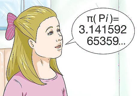 Memorize pi to as many decimal places as you can. Pi is an irrational number used to calculate the area and circumference of a circle. Since its decimal form never ends and doesn’t repeat itself, many math enthusiasts make it their mission to commit as many digits to memory as possible. If you’re interested in trying your hand at memorizing pi, start with its common abbreviated form, 3.14159, and work your way up from there. Currently, the world record for most numbers of pi memorized and recited is 70,000 digits. Talk about a mind for numbers!