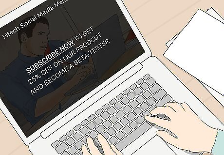 Attract a customer base before your product exists. Use your internet and social media presence to build up a following of people who are interested in your product. You might create a waitlist or get people to sign up for a newsletter that will keep them informed. Offer insights and information about the development of your product to newsletter subscribers that are not released to the general public. This will encourage subscribers to believe that they're "on the inside" and have knowledge about something that others don't. You might also offer your product to wait-listers or newsletter subscribers before your full launch to the general public. This soft launch also gives you the opportunity to make improvements or fix something that isn't working like it's supposed to.
