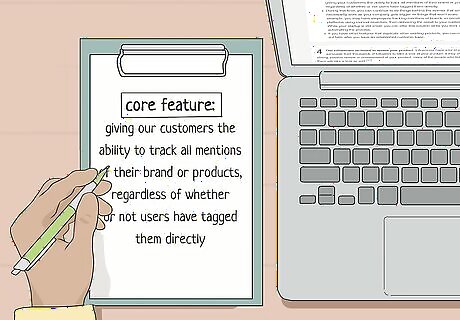 Isolate the core features of your product. Your product is designed to address a problem. Figure out which features are absolutely necessary to use your product effectively. These are your core features. Ideally, they'll also be features that set you apart from existing products already on the market. For example, if you have a social media management product, you might start by giving your customers the ability to track all mentions of their brand or products, regardless of whether or not users have tagged them directly. During this time, you can continue to do things behind the scenes that won't necessarily work as your company gets bigger — things that won't scale. For example, you may have employees tracking mentions of brands on social media platforms using manual searches, then delivering the result to your customers. While your startup is still small, you can offer this solution while you work on automating the process. If you have other features that duplicate other existing products, you can roll those out later after you have an established customer base.