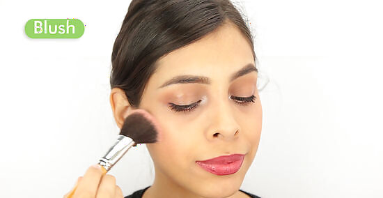 Add blush. Apply a blush of your choice above the contour line to draw attention to your eyes and cheekbones. Blend in the same direction as you blended the contour line.