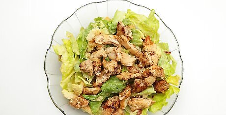 Change your diet. Eating healthier is one of the most effective ways of cutting down on weight. Note that your face is often one of the last areas to slim out when losing weight. Count calories. Keep track of how many calories you've consumed versus your targeted goal. Apps are available to help you determine how many calories are featured in common foods. Keep a lot of tempting foods, such as those high in sugars or carbs, out of the house. You're less likely to eat unhealthy foods if they are not easily accessible. Eat plenty of vegetables. Vegetables help you feel full throughout the day, in addition to housing plenty of important vitamins and nutrients. Drink plenty of water. Like eating vegetables, water helps you feel full and keeps your hunger in check. Keep a food journal. Writing down what you eat can help you keep your healthy eating habits on track and help you understand your eating habits as a whole. Food journals also help identify which foods are particularly high in calories. Avoid fad diets and supplements. Fad diets are ineffective and lack scientific evidence to back up their claims. At worst, they can cause you to alter your diet in a negative fashion by cutting out essential food groups.