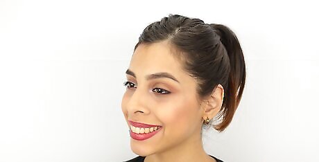 Change your hairstyle (Optional). Alter your hairstyle to better accentuate your cheeks, or to give your face an overall thinner appearance. Pulling your hair back into a ponytail, parting your hair on the side instead of the middle and adding volume to the crown of your head all help your face appear thinner.