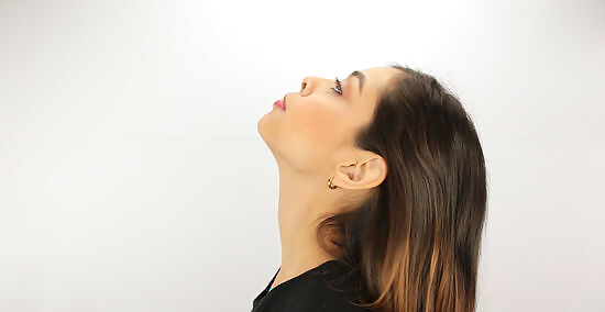 Blow air. Sit on a chair with your spine straight and tilt your head back so that you face the ceiling. Pucker your lips and blow air from your mouth for between 5 and 10 seconds before relaxing. Repeat 15 to 20 times for best results.