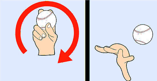 Release the Ball. Snap your wrist as you release the ball and turn your hand away from your body as though it were a football. Allow the ball to roll off of your pointer finger. The gyroball does spin not backward (like a fastball) or forward (like a curveball) but in a spiral (like a well-thrown football).