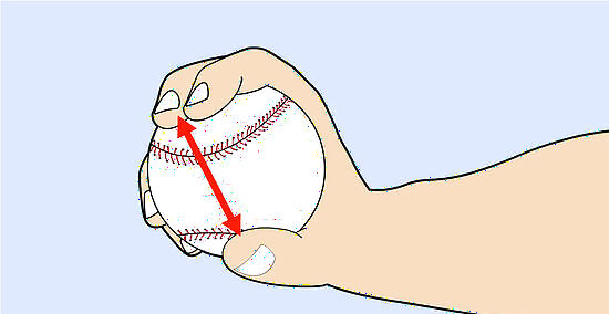 Learn to grip the ball. Grip the ball like you would grip a four-seam fast ball. Place your index and middle fingers an inch apart across the seams. Place your thumb on the other side of the ball between your two fingers.
