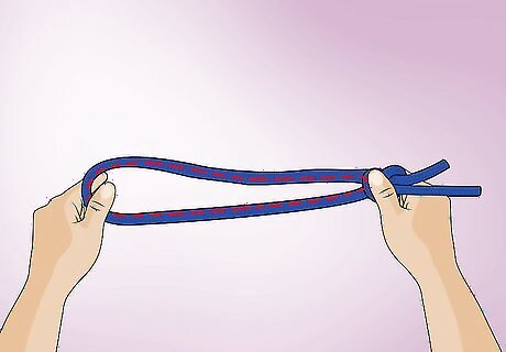 Gather a standing line and a loop. The standing line needs to be about twice diameter of the loop. For example, if your loop is 6mm (about a quarter of an inch) thick, the standing line should be at least 12mm (about half an inch) thick. The standing line will support the knot and the loop will form the knot around the standing line. You can buy a standing line and a Prusik loop at a local sporting goods store or on Amazon. You can also form your own loop with a cord that is about 5ft (about 1.5m) long and 5-6mm (or .2in) thick. To join the ends, tie a double fisherman’s knot. The standing line can be a simple climbing rope. Climbing ropes come in all different lengths, depending on what you will use it for. If you wish to cover significant distance, get one that is at least 100ft (about 30m) long. For shorter distances, a 25ft (about 7.5m) rope would work well.