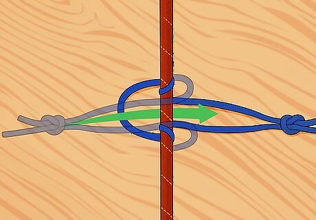 Place the loop underneath the standing line. It should be off center and perpendicular to the standing line. Lay the loop flat underneath the standing line and let the standing line rest on top of it. If your loop has a knotted end, make this the long end and the other end will be the short end. By placing it off center, you will be able to see which side you are looping more easily. The long end will be looped and the short end will stay in place, so it is important to distinguish between the two.