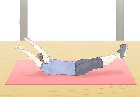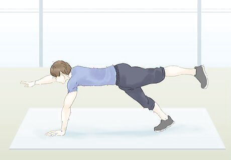 Try the superman position. Like the plank position, the superman exercise is an isometric activity that will focus on strengthening the entire back of your body. Lie face down on the floor to start this exercise. Point your arms straight in front of you and your legs straight behind you. Lift up your arms and legs and flex your back so your body forms a slight "U" shape. You should feel your shoulders, back, glutes and leg muscles all tensing to hold this position. Hold the superman pose as long as you can and repeat 2-3 times.
