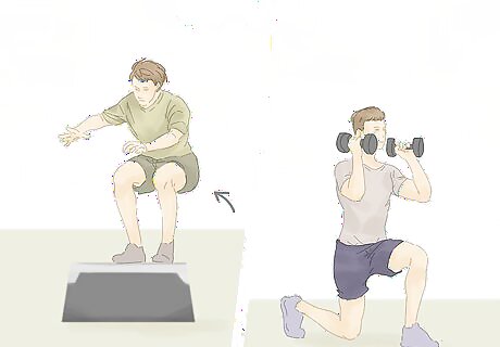 Balance isometric exercises with other forms of strength training. While isometric exercises are great, to round out your strength training workout, include other forms of training to ensure you're working your body appropriately. Include training with weights for compound exercises. This type of strength training will recruit multiple muscle groups and joints to build both strength and mass. Plyometrics is a type of strength training that can aid fighters - especially boxers. It relies on power generated through muscle contraction before an explosive and forceful movement. It can help improve reactive strength which is important to the sport. Examples of plyometric exercises include box jumps, jumping jacks, and clap push-ups.