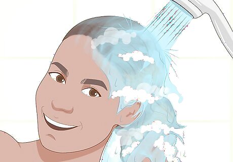 Rinse the color from your hair according to package instructions. In most cases, you'll want to use warm water and work the dye into a bit of lather before rinsing it fully from you hair. Continue rinsing until the water that falls from your hair is completely clear.