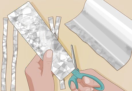 Cut pieces of foil for wrapping your hair. Covering your hair in foil after you've applied the dye keeps the different colored sections separated from one another. Use scissors to cut enough pieces of foil to cover the sections for both the darker and lighter shades that you’re using. The pieces should be large enough to fully wrap around each individual section that you’re applying the dye to. For example, if you've divided your hair into 10 sections for the darker shade and 10 sections for the lighter shade, you'll need to cut at least 20 pieces of foil. It's a good idea to cut a few extra pieces of foil just in case it turns out you need more as you begin applying the dye.