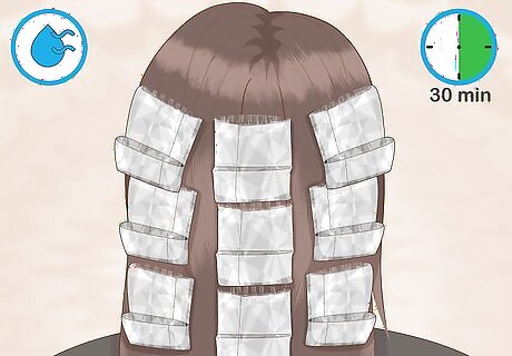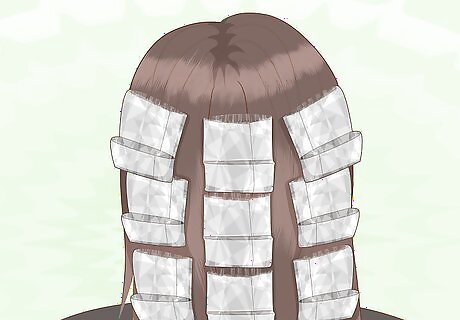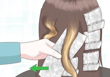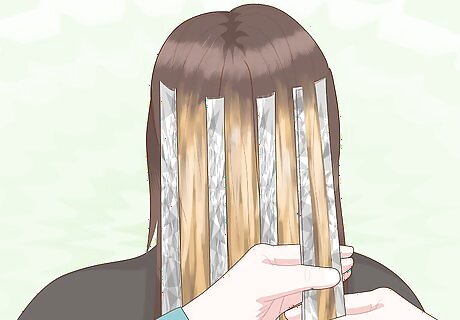 Wrap the hair in foil. Just as with the mid-tone shade, fold a piece of foil around each section of the hair right after you’ve applied the brighter color to it. Make sure that each section is fully covered.