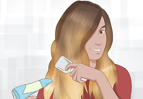 Dry your hair. It’s best to let your hair air dry after you dye it. Blot it gently with a towel after you've rinsed it to remove the excess moisture and allow it to dry fully. If you want to blow dry it, though, apply a heat protectant product first and use the lowest heat setting.