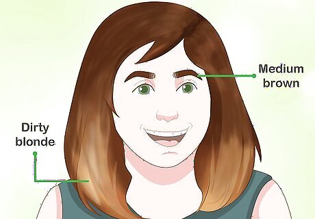 Go a few shades lighter than your brows for beneath the roots. Using your eyebrows as a guide helps you get a gradual fade from your natural roots to the lighter ends of your hair. Aim for 2 to 3 shades lighter than your brows, so you don’t choose a color that’s too light. For example, if your natural roots and brows are a light to medium brown shade, you might opt for a dirty blonde tone for just beneath the roots.
