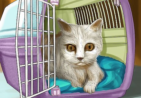 Remain calm. If your cat begins to panic at any point during the process, remember to remain calm. Place the carrier close but out of sight. Then, calm your cat by petting it and talking to it in a soothing voice. Once your cat has relaxed, wrap it in a familiar towel and then place it quickly, but carefully, into the carrier.