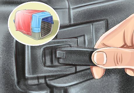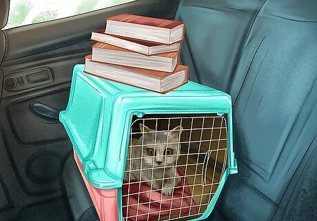 Secure the carrier. Secure the carrier by buckling it in, or by placing something heavy, like books, on top of it. Try to position the entrance of the carrier away from the direct flow of your car’s air vents. Alternatively, you can place the carrier on the floorboards of your car to secure it. This will also help reduce motion sickness. Never place the carrier and your cat in the bed of a pickup truck.