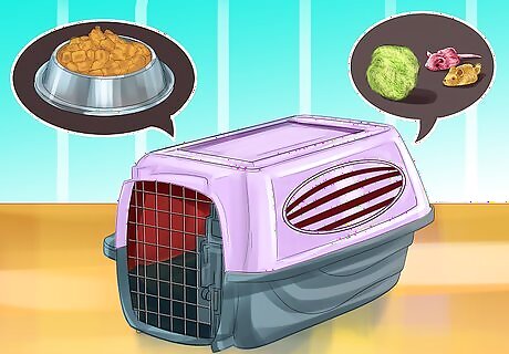 Place food and toys in the carrier. This will help entice your cat to explore the carrier on its own. You can also place a piece of your cat’s bedding, like a blanket, in the carrier. If you don’t have a piece of bedding, put a piece of clothing that belongs to the cat’s favorite person in the carrier. Alternatively, rub a towel or cloth behind your cat’s ears and around its neck and face to pick up its scent. Place this inside the carrier. The goal is to make the carrier comfortable enough for your cat to eat or sleep in.