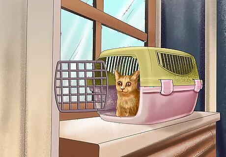 Place the carrier near one of your cat’s favorite spots. Leave the carrier’s door open so your cat can explore the carrier as it pleases. It is best to do this at least a week in advance so your cat has enough time to become comfortable with the carrier. For example, place the carrier near one of your cat’s sunning spots, like the window sill, or near your cat’s bed or favorite napping spot.