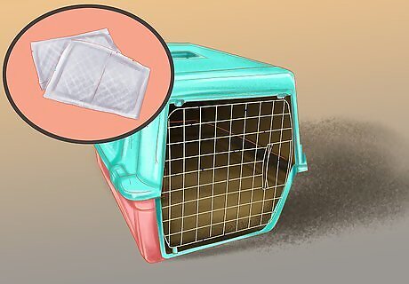 Place absorbent pads at the bottom. An absorbent pad (for cats or dogs) is a great way to keep your cat and car clean if it soils itself on the way to the vet. Also, place a familiar towel and other bedding in the carrier to make it comfortable and to help calm your cat. Alternatively, you can place newspaper and a towel at the bottom of the carrier if you don’t have absorbent pads on hand. If you are bringing the cat to the vet for urine testing, you may not want to place any absorbent pads in the carrier so the cat is able to give a better urine sample when you arrive.