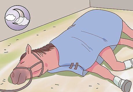 Stop every 12 hours on longer trips to put your horse up for the night. If you’ve got a long road ahead of you, veterinarians recommend pulling over after about half a day’s worth of travel time to give both you and your horse a much-needed break. Allow your horse to rest for at least 8 hours before you head on to your next stop. Plan your overnight stops in locations where you can rent a stall at a commercial stable. Horses experience travel exhaustion just like people do. If you find yourself feeling fatigued after a lengthy drive, chances are your horse is, too.