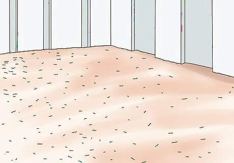Cover the floor of the truck or trailer with a rubber mat and bedding material. First, place a rubber mat along the entire length of the truck or trailer so your horse will have traction. This helps your horse avoid falling over on the smooth metal surface. Then, spread a thick layer of hay, wood shavings, or whatever bedding material your horse is used to over the entire bottom surface. Without a rubber mat, it's easy for a horse to accidentally fall while the trailer is moving. This will make the compartment more comfortable and inviting to your horse. It will also absorb any urine or manure that’s released during the trip. Scattering some bedding onto the ramp when it comes time to load your horse can also improve its footing and help calm its nerves by presenting it with a familiar sight. The shavings also help lighten the feeling inside the trailer. Horses don't like going into dark spaces, as these places feel like a pit to them. You want your trailer to be as bright as possible.