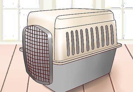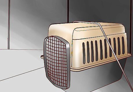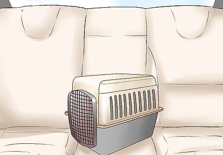 Get a hard-shell crate. Choose a sturdy, hard-shell crate to transport your cat. This style crate will be much easier to safely secure with a seatbelt in the backseat. A secure crate will also move less during the trip, making it less stressful for your cat. This can also reduce the risk of injury or harm to your cat if an accident were to happen. Keeping your cat in a crate will also prevent your cat from escaping through a window or door when the car is stopped. It will also keep your cat out of areas in the car where she could get stuck, like under one of the vehicle's seats. Before your big trip, try taking short rides around town with your cat to help get used to traveling in the crate.