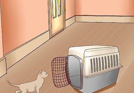 Leave the crate out. Since you'll most likely be transporting your cat in a crate, leave it out and open in your house. Do this for as long as possible before your trip. This way your cat can explore the crate itself and become accustomed to seeing it or being in it without any fear. The more comfortable your cat is with its crate, the more comfortable they will feel in it while they are traveling.