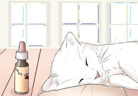 Practice giving your cat sedatives. If your cat doesn't respond to more natural calming methods, ask your veterinarian to prescribe a sedative. This will let your cat sleep during travel. No matter which sedative your vet recommends, you should do a few trial runs with your cat before your big trip. Trial runs will let you know how your cat responds to the sedative and whether you need to adjust the timing or dosage, before the trip.