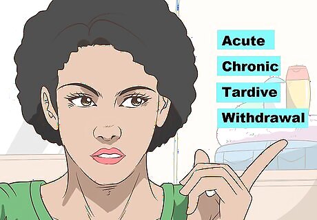 Monitor changes during the entire course of your treatment. Akathisia can develop right after you've started some medications, once you've been taking treatments for a while, or after you've stopped or switched medications. It's important to constantly look for signs of akathisia. Akathisia is usually classified as: Acute, if it develops after you started medication and it lasts less than 6 months. Chronic, if it lasts more than 6 months. Tardive, if it isn't related to changes in your medication and starts after you've been taking medication for several months. Withdrawal, if it appears within 6 weeks of switching or stopping medications.