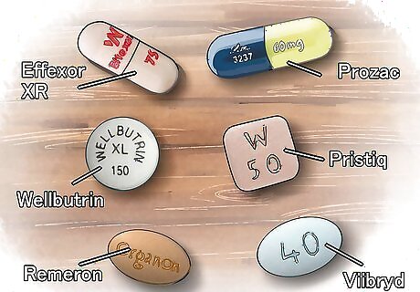 Try additional antidepressants. Another antidepressant group is SNRIs, which work by increasing the amount of serotonin and norepinephrine available in the brain. This group includes medications such as Effexor XR, Cymbalta, and Pristiq. NDRI is another option. It affects the levels of norepinephrine and dopamine in the brain. It includes a medication called Wellbutrin. You can also take atypical antidepressants, named so because they does not fit neatly into other categories of antidepressants. This category of antidepressants include Remeron and Viibryd.