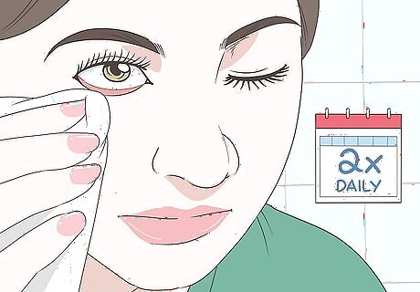 Repeat the routine 2 times daily during flare-ups and once daily after that. Blepharitis can take a week or longer to clear up, so persistence is important. Also, after you’ve had blepharitis once, you’re more likely to get it again. Maintain your regimen of soaking and cleansing your eyelids 2 times daily until your symptoms are completely gone and then continue to follow the regimen once per day after that. This will help to treat blepharitis and prevent a recurrence. For example, you could do your soaking and cleansing routine first thing in the morning and right before bed at night.