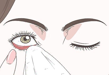 Apply a wet, warm compress to your closed eye for 5 to 10 minutes. Wet a washcloth with warm water and wring it out. Then, fold the cloth in half and apply the washcloth to your affected eye or both eyes. Gently press the cloth so that it is making contact with your eyelids. Apply a warm compress 2 to 4 times daily to help soothe and cleanse your eyelids.Tip: For an even more effective compress, soak the washcloth in a solution of 8 fl oz (240 mL) of warm water and 1/4 teaspoon (1.25 g) of salt. Make sure to wring the washcloth out well before applying the cloth to your eyelids.
