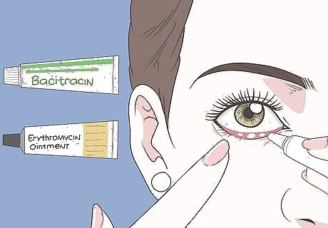 Apply an antibiotic ointment to your eyelids if your doctor suggests it. Your doctor may recommend an over-the-counter antibiotic ointment, such as bacitracin, or a prescription ointment, such as erythromycin. This may be necessary to treat your blepharitis if it’s severe or not responding to a daily soaking and cleansing regimen. Apply the ointment to the edges of your eyelids once daily after washing and drying them. A good time to apply the antibiotic ointment is right after your soaking and cleansing routine. Be careful not to get the ointment in your eyes. Only apply it to your eyelids. If you do get it into your eyes by accident, rinse them with cool water immediately. Your doctor may recommend washing your eyelids daily with a mixture of warm water and a few drops of baby shampoo before applying the ointment. You can also purchase an over-the-counter eyelid cleansing scrub.