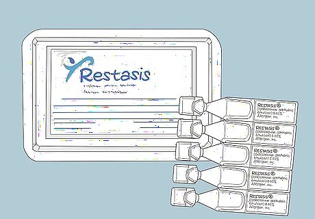 Find out if cyclosporine (Restasis) may be helpful for your condition. This medication is commonly prescribed to treat dry eye, but it may also be helpful for treating symptoms of blepharitis. Ask your doctor if this might be a helpful treatment option for you. If your doctor prescribes this medication, place 1 drop into each eye twice daily, and try to spread out the doses so that they are about 12 hours apart. For example, you could take the first dose after finishing your eye cleansing routine in the morning at 7:00 am and the second dose after finishing another eye cleansing routine at 7:00 pm. Never touch the dropper with your fingers or touch it to a surface. This can introduce bacteria into the dropper, which could lead to an eye infection.